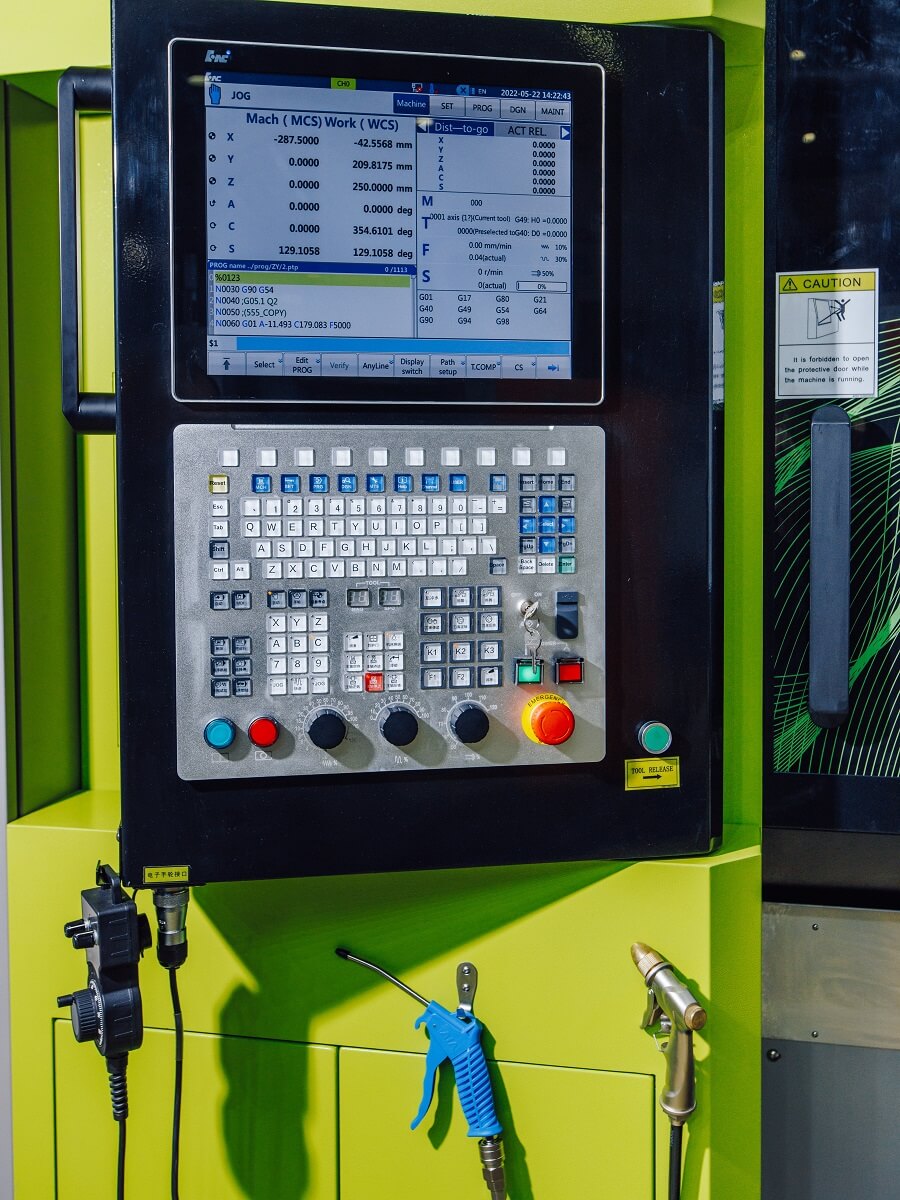 Стойка ЧПУ оснащается 17-дюймовым экраном с разрешением 1280*1024 в стандартной комплектации. Опционально устанавливается цветной сенсорный ЖК-монитор 17 дюймов. Панель выполнена из алюминиевого сплава. Для ввода команд и привязки горячих клавиш предназначена клавиатура MCP.