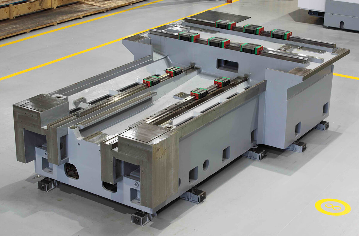 Станина Основа станка выполнена из цельнолитой Т-образной станины высокой прочности и точности. Тело станка спроектировано с использованием анализа метода конечных элементов, обеспечивая необходимую сохранность статичности, динамической жёсткости и точности. Дополнительная жесткость/твердость достигается заполнением узлов станка виброгасящим материалом. |
