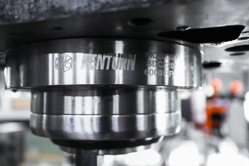 Шпиндель производства компании ROYAL или VYU CHENG (Тайвань), характеризуется высокой точностью и повышенной жесткостью. В шпиндельном блоке устанавливаются эксклюзивные подшипники класса P4 (в передней опоре - 3 подшипника, в задней опоре 2 подшипника), а сборка всего комплекта шпинделя выполняется при постоянной температуре. Передача крутящего момента происходит за счет ременной передачи. Для шпинделя предусмотрена бесступенчатая регулировка скорости вращения в его диапазоне скоростей. С помощью встроенного датчика положения шпиндель может выполнять свою ориентацию и функцию жесткого нарезания резьбы.