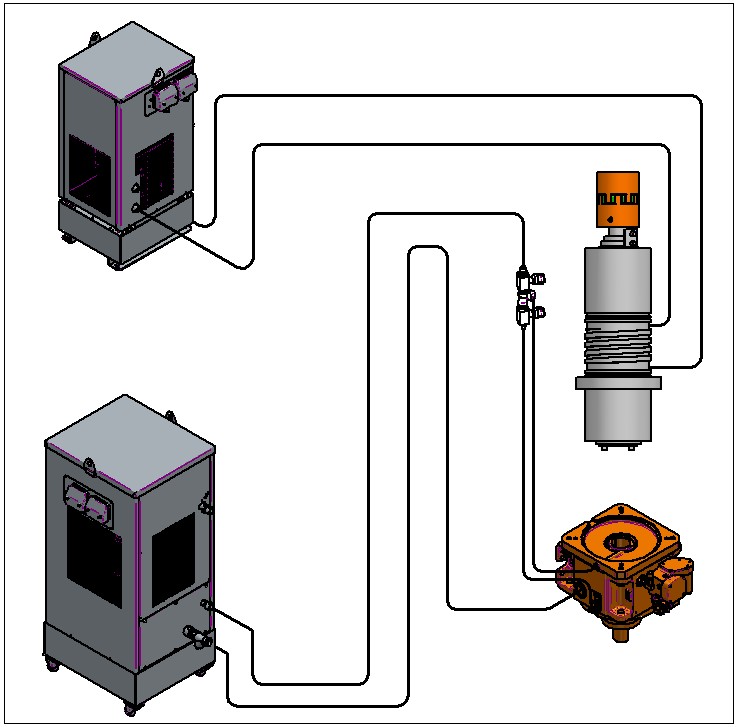 Двухпомповая система мощностью 3 кВт поддерживает постоянную температуру масла для охлаждения шпинделя и редуктора. Минимизирует какие-либо изменения размеров шпинделя, увеличивает машинную точность и качество обработки. Датчик температуры зафиксирован на корпусе, что позволяет отслеживать реальную температуру масла. Шпиндель на 15 000 об/мин оснащается кондиционером Cold Star (Италия) для поддержания температуры масла в пределах ±0,1° — гарантирует еще большую стабильность и точность.