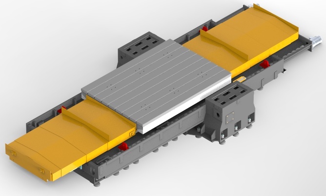 Каретки качения По оси X установлено 6 кареток, и каждая несет нагрузку до 165 кН. Нагрузка по массе заготовки - до 10 тонн. |