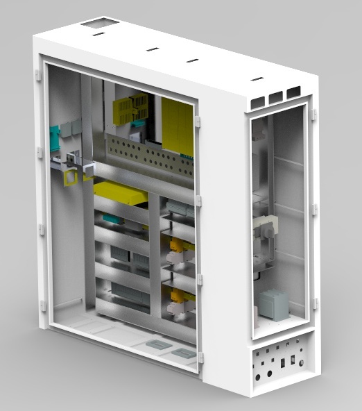 Низкого и высокого напряжения. Разделены между собой. Все сигнальные кабели отделены от кабелей высокого напряжения для обеспечения более стабильного сигнала. Кабинет высокого напряжения — контакторы, трансформатор, фильтр шпинделя. Вырабатывают мощное электромагнитное поле во время работы. Чтобы избежать помех компоненты изолированы от других систем.