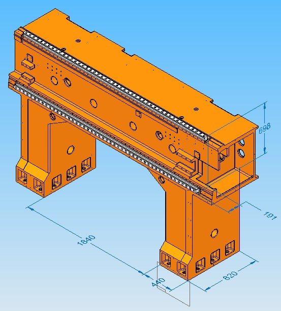 Широкая контактная поверхность колонн и станин, а также опора колонны, расширяющаяся книзу увеличивают стабильность и отсутствие деформаций. Жесткость усиливает огромное количество ребер внутри станины.
