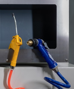 Пистолет для обдува и обмыва рабочей зоны сжатым воздухом облегчает удаление стружки с заготовки и уборки рабочей зоны станка.