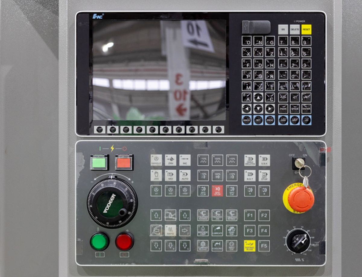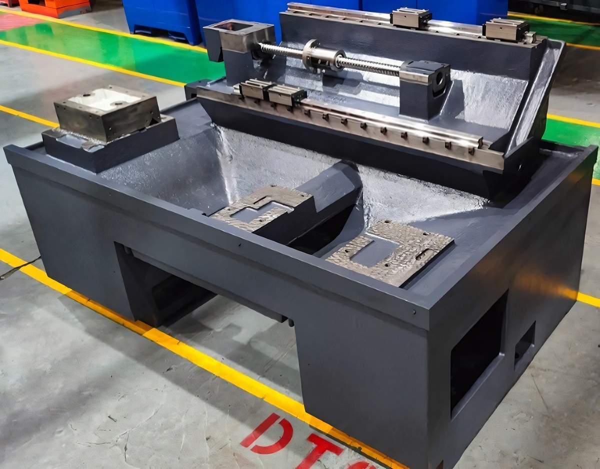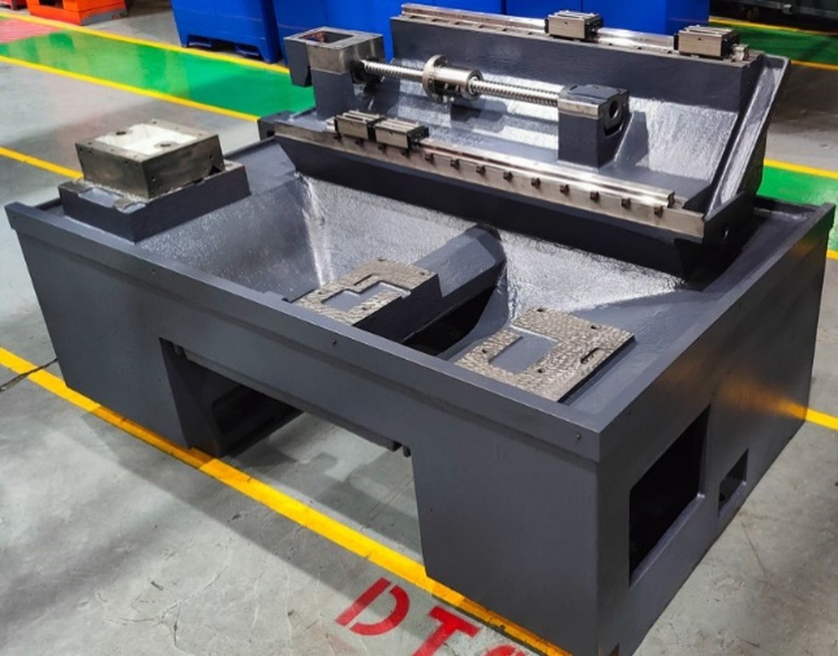 Наклонная станина отлита из чугуна. Угол наклона станины 45°. Такая конструкция станины обеспечивает лучшую устойчивость, жесткость, гашение вибраций. Так же наклонная станина занимает меньшую площадь, что позволяет легко удалять стружку и очищать станок.