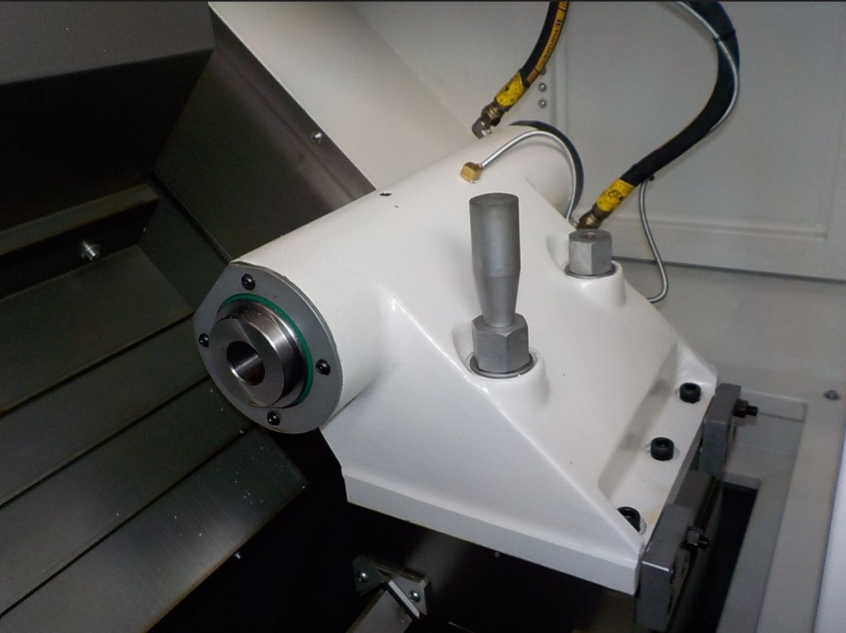 Гидравлическая пиноль задней бабки На станке установлена гидравлическая задняя бабка. Движение задней бабки осуществляется по направляющим качения роликового типа. Управлять перемещением задней бабки можно через ЧПУ или от педали. Ход задней бабки составляет 130 мм. |