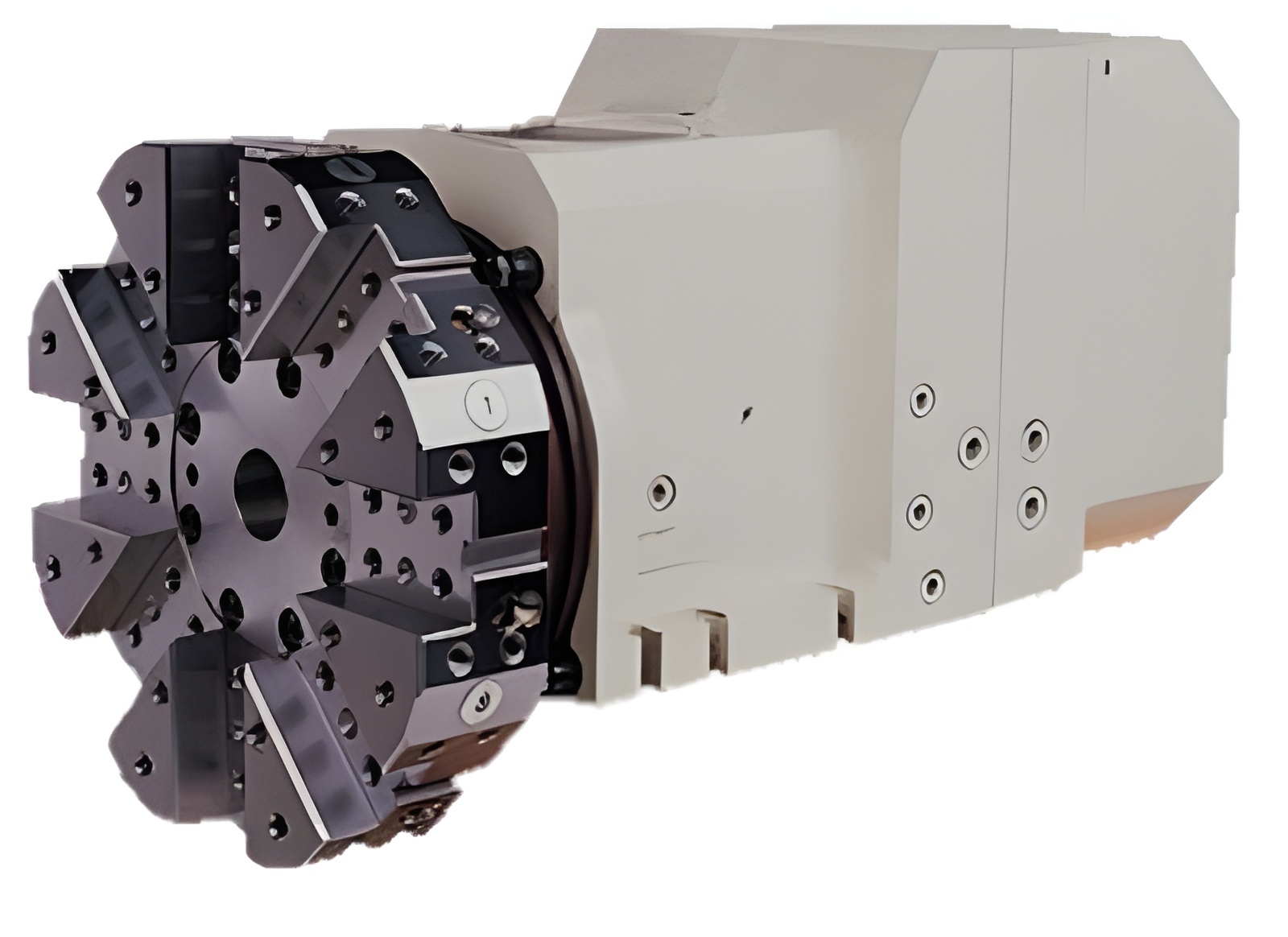 Револьверная головка В стандартной конфигурации станок оснащен серво приводной револьверной головкой на 8 инструментов (10 / 12 опция), обладающей повешенной жесткостью, надежным захватом, высокой скоростью индексации и высокой повторяемостью позиционирования. |