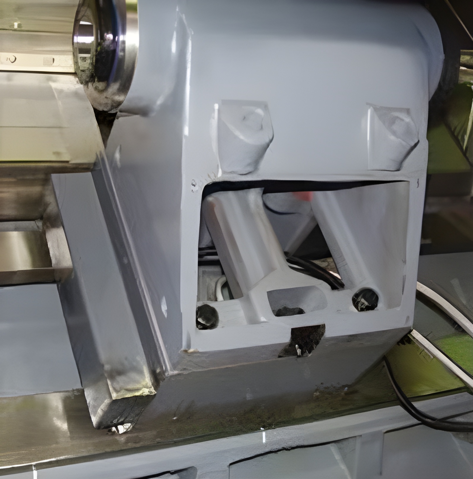 Цельная станина с углом наклона 45° изготовлена из модифицированного чугуна – механита с внутренними ребрами жесткости. Такая конструкция станины обеспечивает лучшую устойчивость, жесткость, гашение вибраций. Так же наклонная станина занимает меньшую площадь, что позволяет легко удалять стружку и эксплуатировать станок.