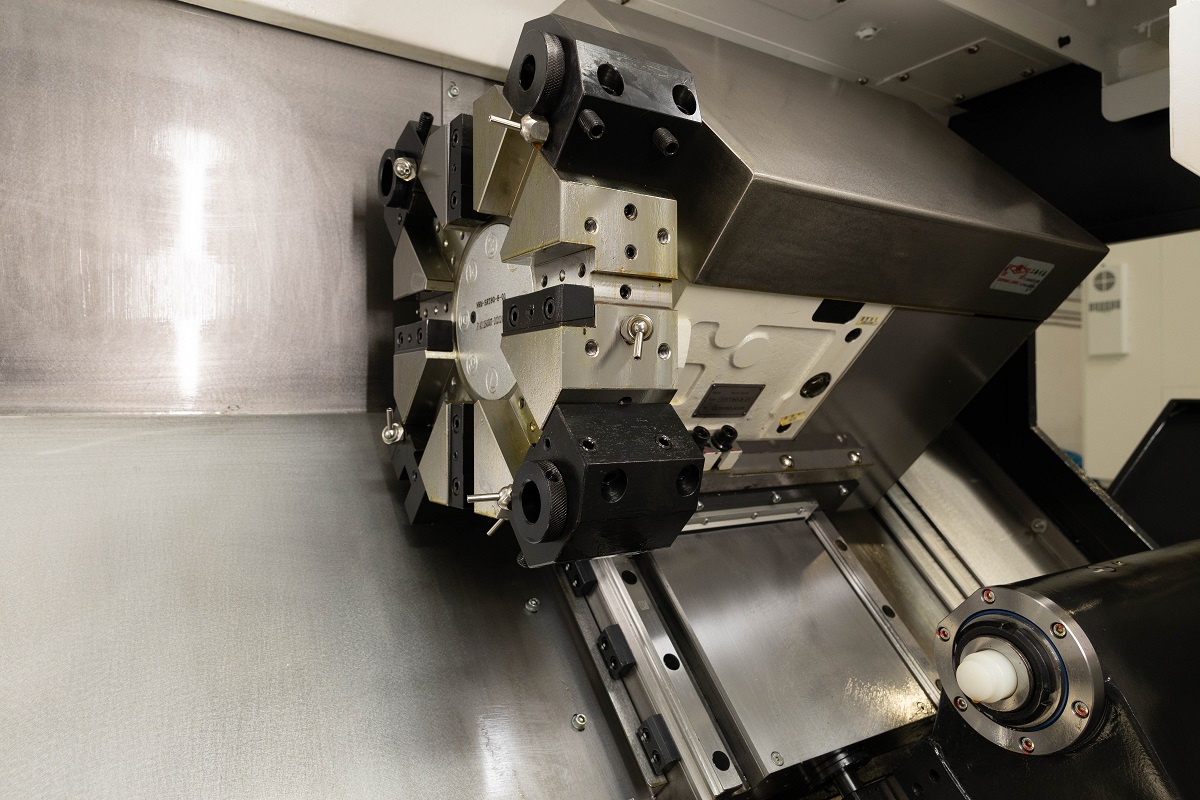 В стандартной конфигурации станок оснащен серво приводной револьверной головкой на 8 инструментов (10 / 12 опция), обладающей повешенной жесткостью, надежным захватом, высокой скоростью индексации и высокой повторяемостью позиционирования.